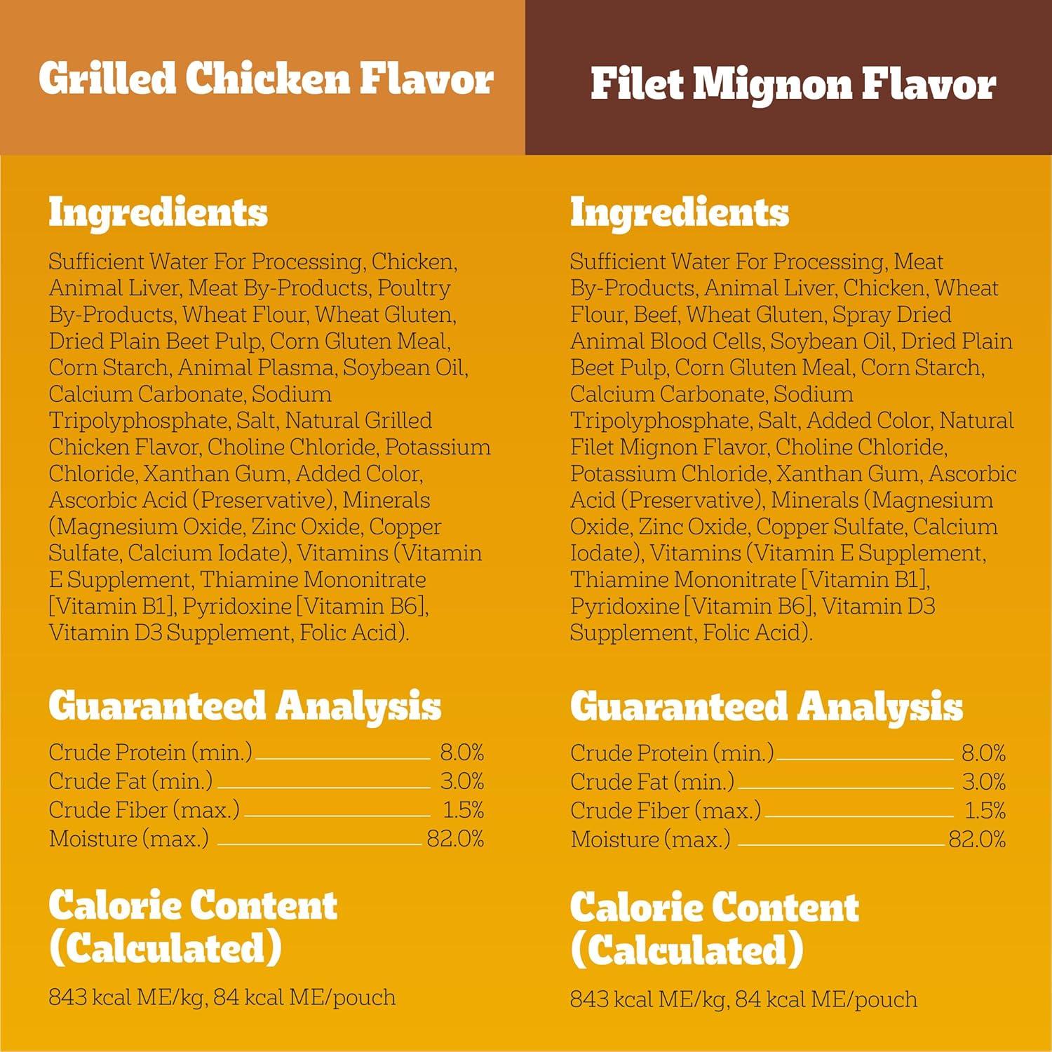 Dogs bring out the good in us. Pedigree brings out the good in them. Express your love for your dog by serving Pedigree Choice Cuts In Gravy Adult Soft Wet Dog Food 16-Count Variety Pack. These great-tasting wet dog food recipes are 100% complete and balanced food For Adult Dogs and are made with real beef or real chicken, bringing a filling and familiar flavor to mealtime. Pedigree Choice Cuts In Gravy Adult Soft Wet Dog Food 16-Count Variety Pack features two delicious options: Filet Mignon Flavor and Grilled Chicken, so your dog can have favorites to choose from. This versatile soft dog food can be served as a topper, mixed with dry dog food, or enjoyed by itself as a complete meal For Adult Dogs, bringing your dog a variety of ways to indulge. Crafted with no high fructose corn syrup, artificial flavors, or added sugars although, trace amounts may be present due to potential cross-contact at manufacturing, Pedigree Choice Cuts In Gravy Adult Soft Wet Dog Food 16-Count Variety Pack shows your dog that you care and want them to have great tasting food.
