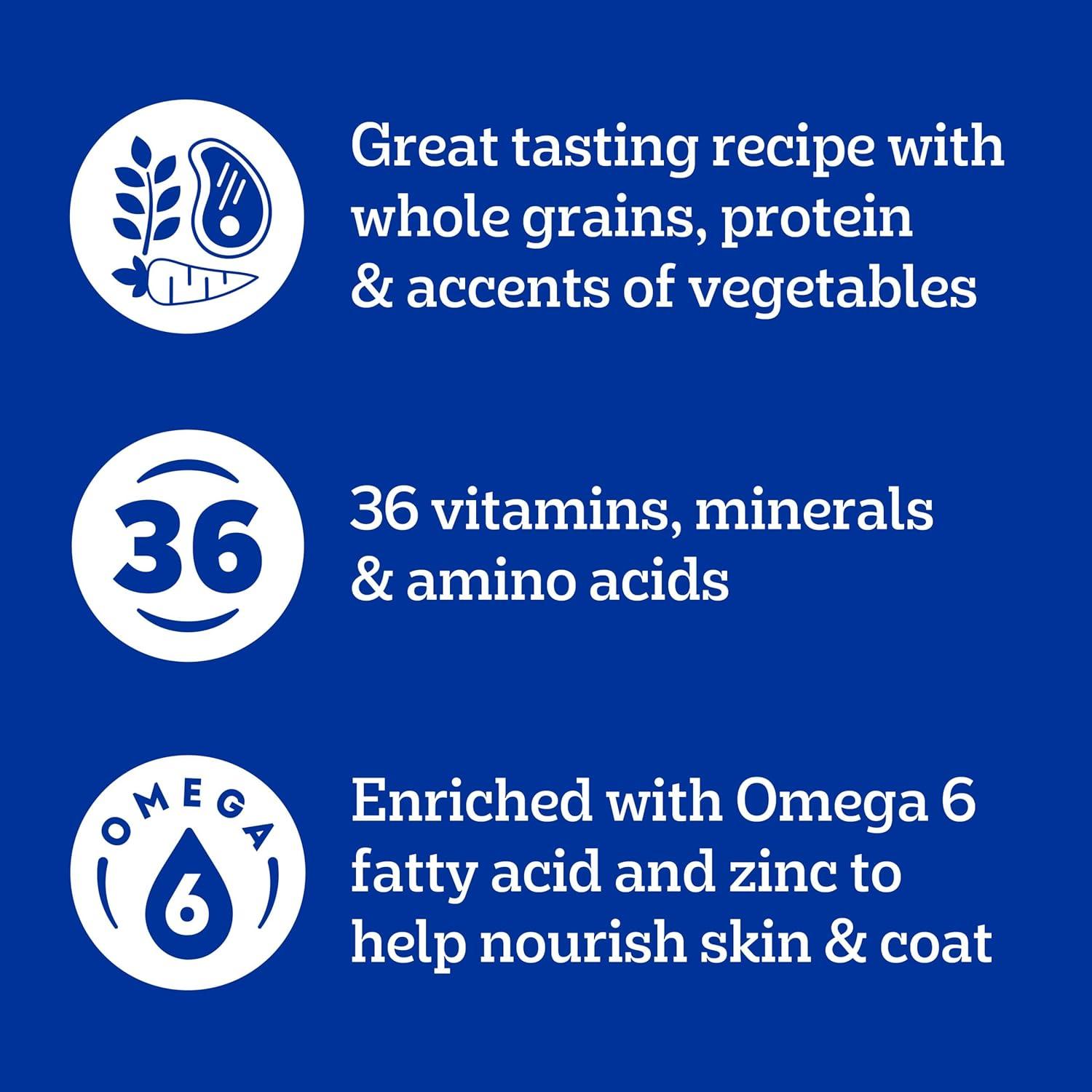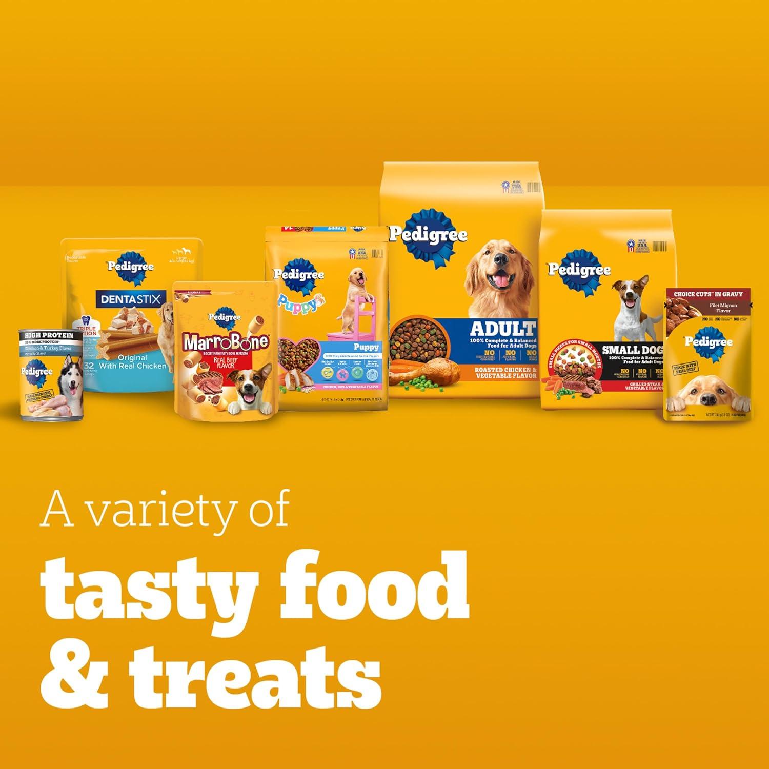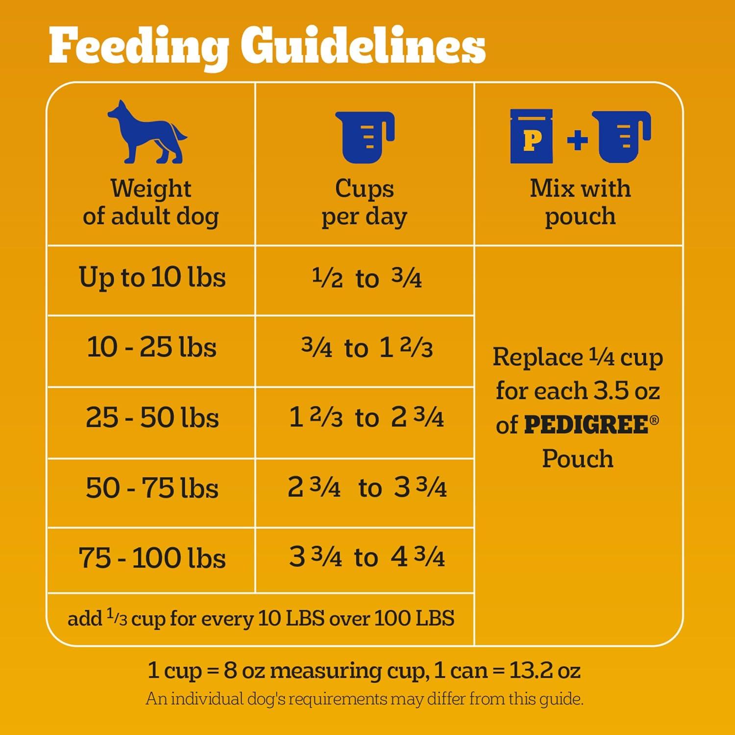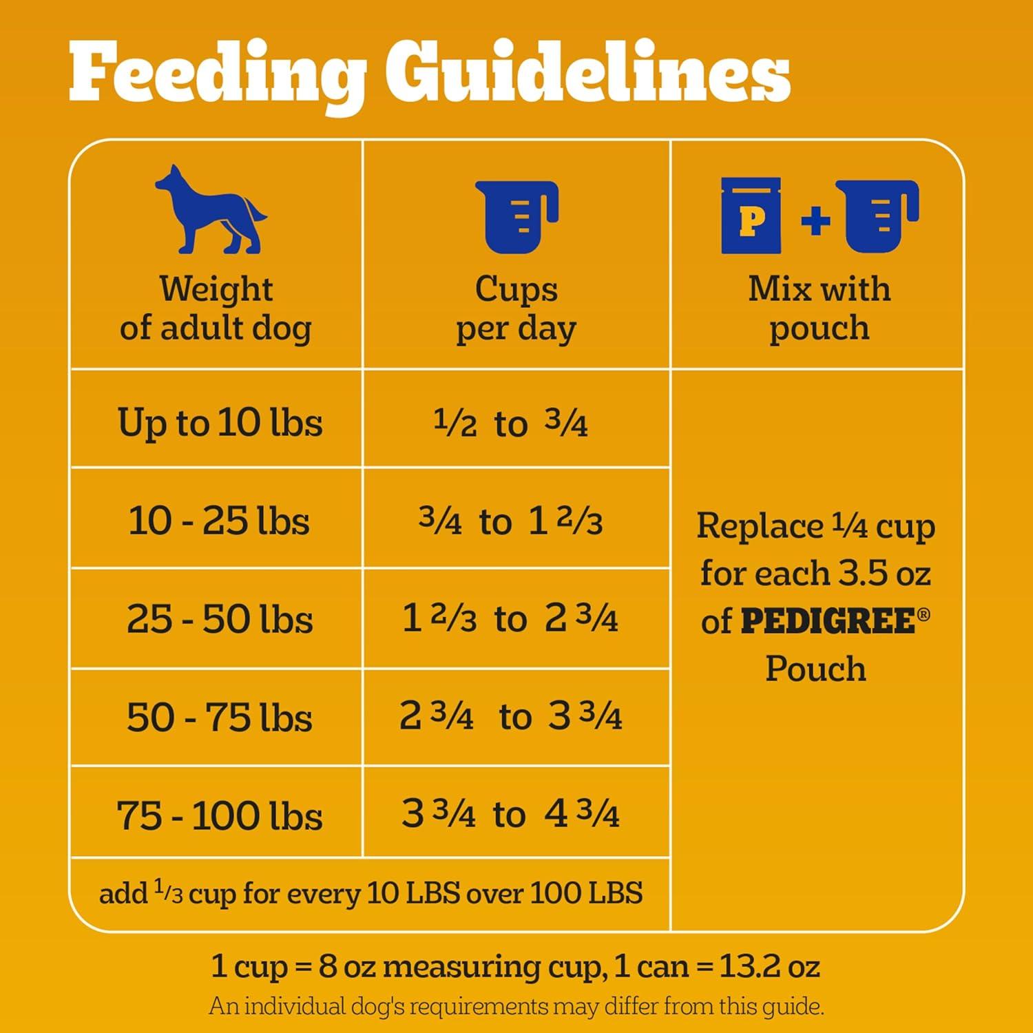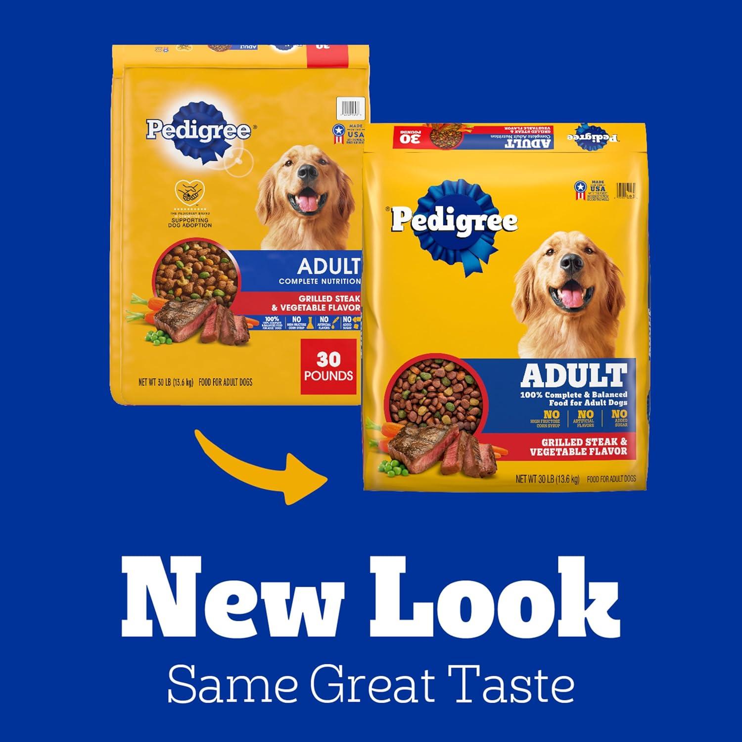 Dogs bring out the good in us. Pedigree brings out the good in them. Express your love for your dog by serving Pedigree Complete Nutrition Adult Dry Dog Food, Grilled Steak & Vegetable Flavor. This 100% complete and balanced adult dry dog food recipe is great-tasting and contains whole grains, protein, and accents of vegetables, bringing your dog a meal with quality nutrition that keeps them happy. To support your dog’s health and vitality, this dry dog food recipe is formulated with 36 vitamins, minerals, and amino acids. It also contains Omega 6 Fatty Acid and Zinc to help nourish a healthy skin and coat. With no high fructose corn syrup, artificial flavors, or added sugars, Pedigree Complete Nutrition Adult Dry Dog Food, Grilled Steak & Vegetable Flavor shows your dog that you care…and have great taste.