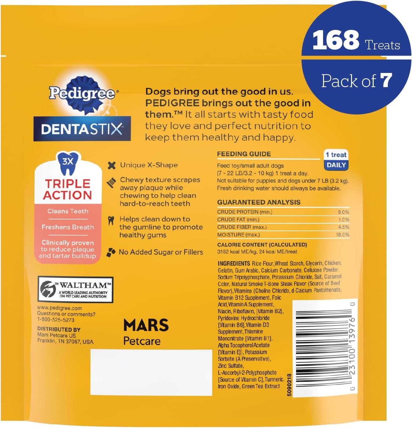 Pedigree Dentastix Small and Toy Breed Dog Treats, Beef Flavor, (7) 24ct Bags (168 Treats Total)