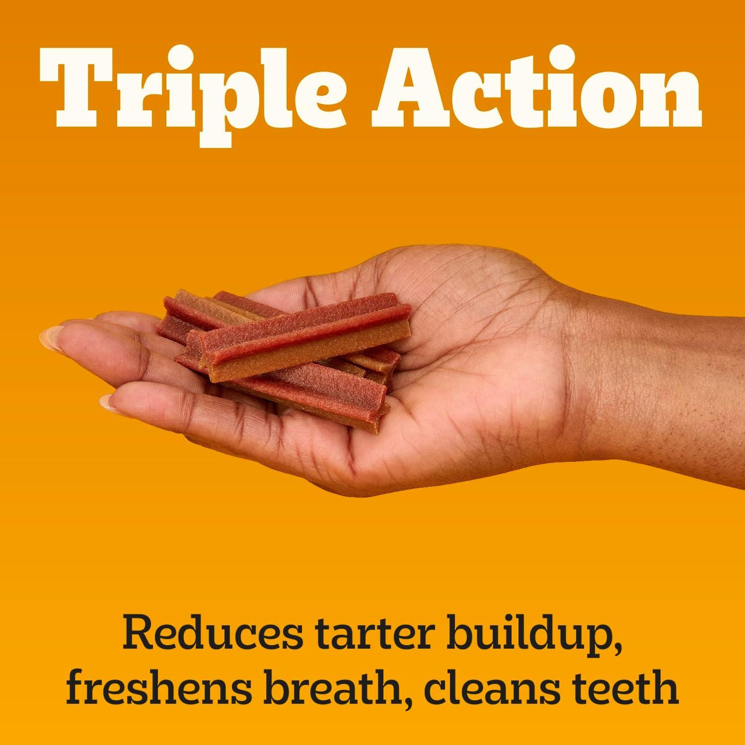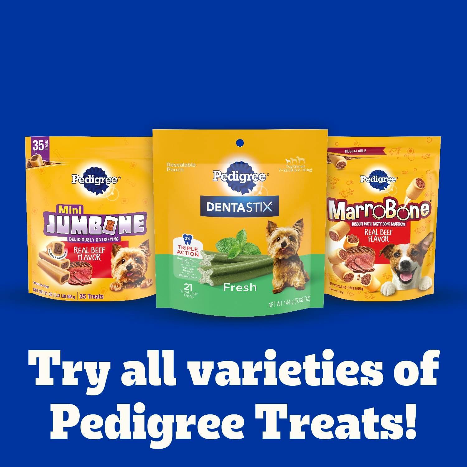 Dogs bring out the good in us. Pedigree brings out the good in them. With Pedigree Dentastix Toy & Small Breed, Original, Beef Flavor & Fresh Variety Pack, you can provide tasty flavors to your dog and help keep them happy with quality dental care. These dental care treats are formulated with no added sugar or fillers and can be served once a day to toy/small breed dogs that are 7-22lbs. Designed with a distinctive X-shape and a chewy texture that scrapes away plaque while chewing to clean hard-to-reach teeth. With triple action that cleans teeth, freshens breath, and reduces tartar buildup, your dog gets a dental treat that helps support the smile you love. This variety pack comes with 3 flavors to choose from including Original, Beef Flavor, and Fresh, making dental care for your small breed dog not only beneficial, but also delicious.