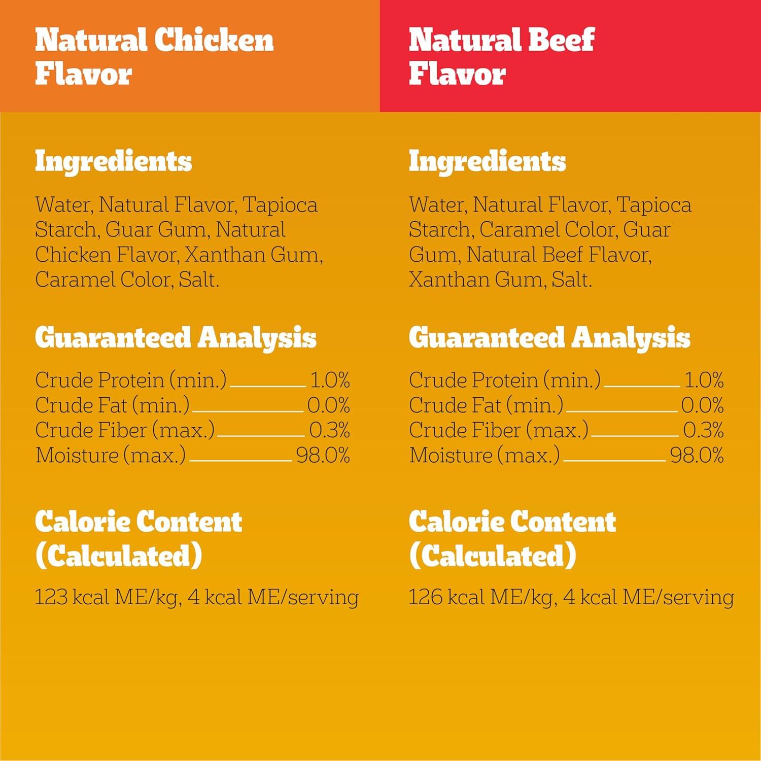 Pedigree Drizzlers Wet Dog Food Savory Sauce Pouches bring delicious flavor to your dog’s favorite dog food. Packed in a unique dual-serving split pouch, Pedigree Drizzlers Wet Dog Food Savory Sauce Pouches let you pour on the flavor now and later. To add flavor to mealtime, split the pouches apart, tear one open, and pour it on your dog’s dog food. The savory sauce dog food topper coats dry dog food so it stays crunchy while adding flavor and only 4 calories per serving. This Pedigree Drizzlers Wet Dog Food Savory Sauce Multipack comes with 2 flavors: Beef and Chicken Flavors. They contain only 8 ingredients and are formulated without artificial flavors, high fructose corn syrup, added sugars, and artificial preservatives, although trace amounts may be present due to potential cross-contact during manufacturing. Pour on the flavor and excitement at mealtime with Pedigree Drizzlers Wet Dog Food Savory Sauce.