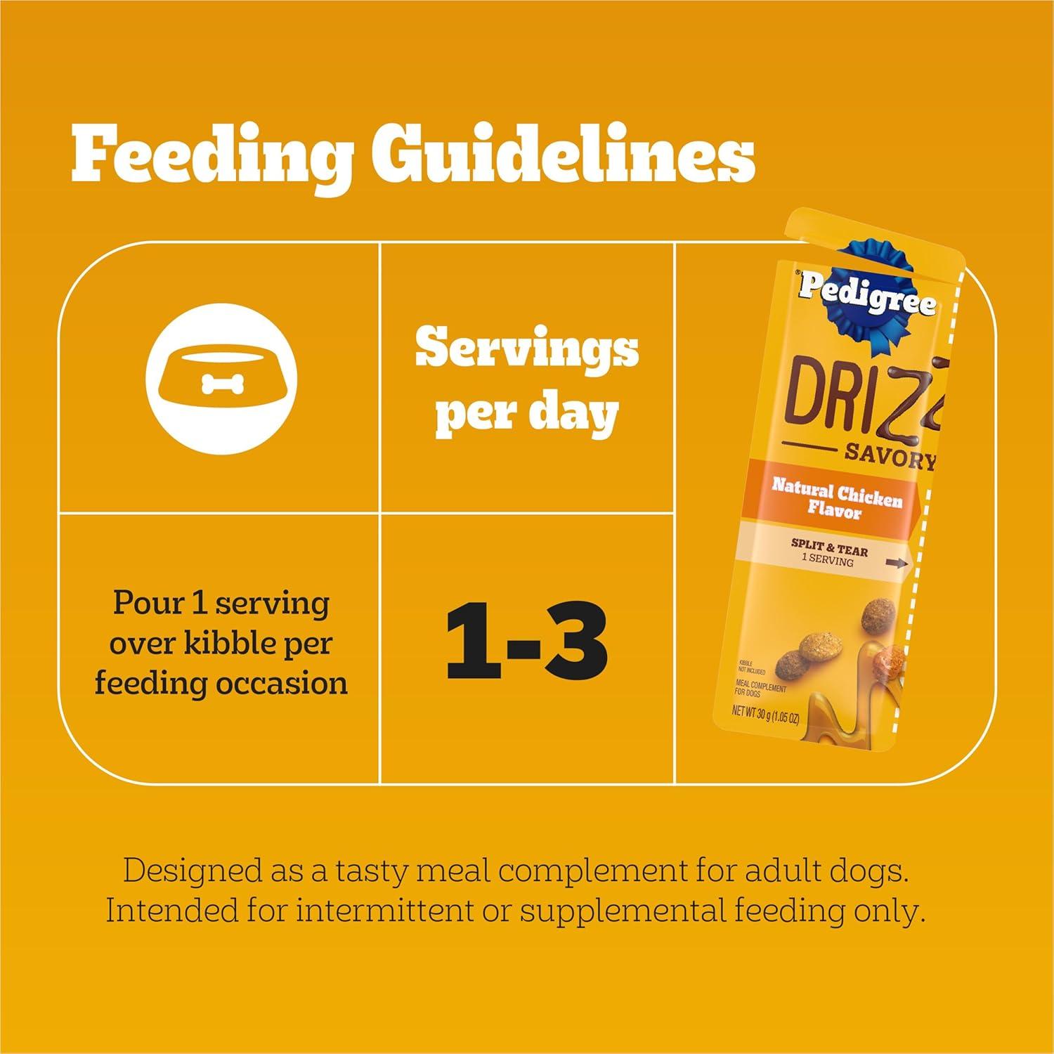 Pour on the Flavor: Coat Pedigree Drizzlers Savory Sauce over your dog’s dry kibble and watch the flavor pour in the bowl while maintaining the kibble's crunchiness