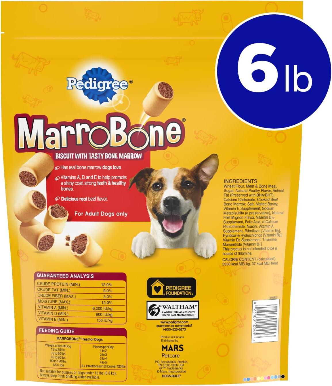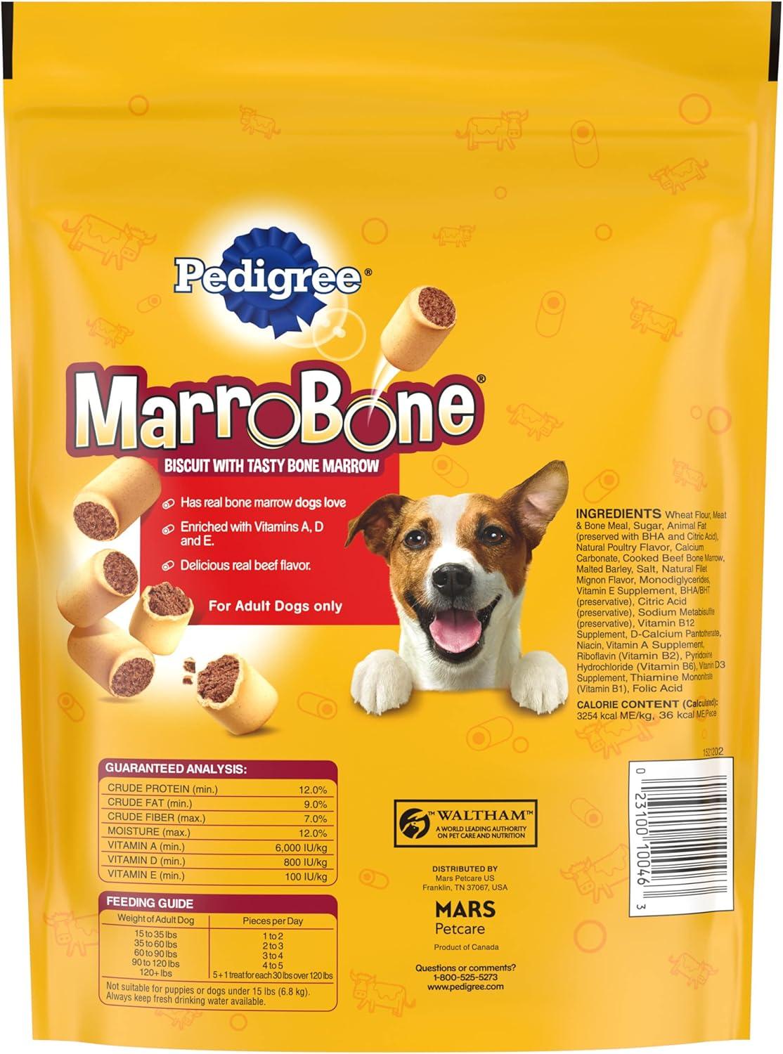 Dogs bring out the good in us. Pedigree brings out the good in them. Pedigree Dry Dog Treats MarroBone Real Beef Flavor is made with real bone marrow and real beef flavor, making this a treat your dog will appreciate. Wrapped in a crunchy dog biscuit, this delicious dog treat is great for rewarding or just enjoying. Pedigree Dry Dog Treats MarroBone Real Beef Flavor is enriched with Vitamins A, D and E, to help promote strong teeth and healthy bones in your dog. Pedigree Dry Dog Treats MarroBone is a treat you can trust, and your small or large breed dog will love.