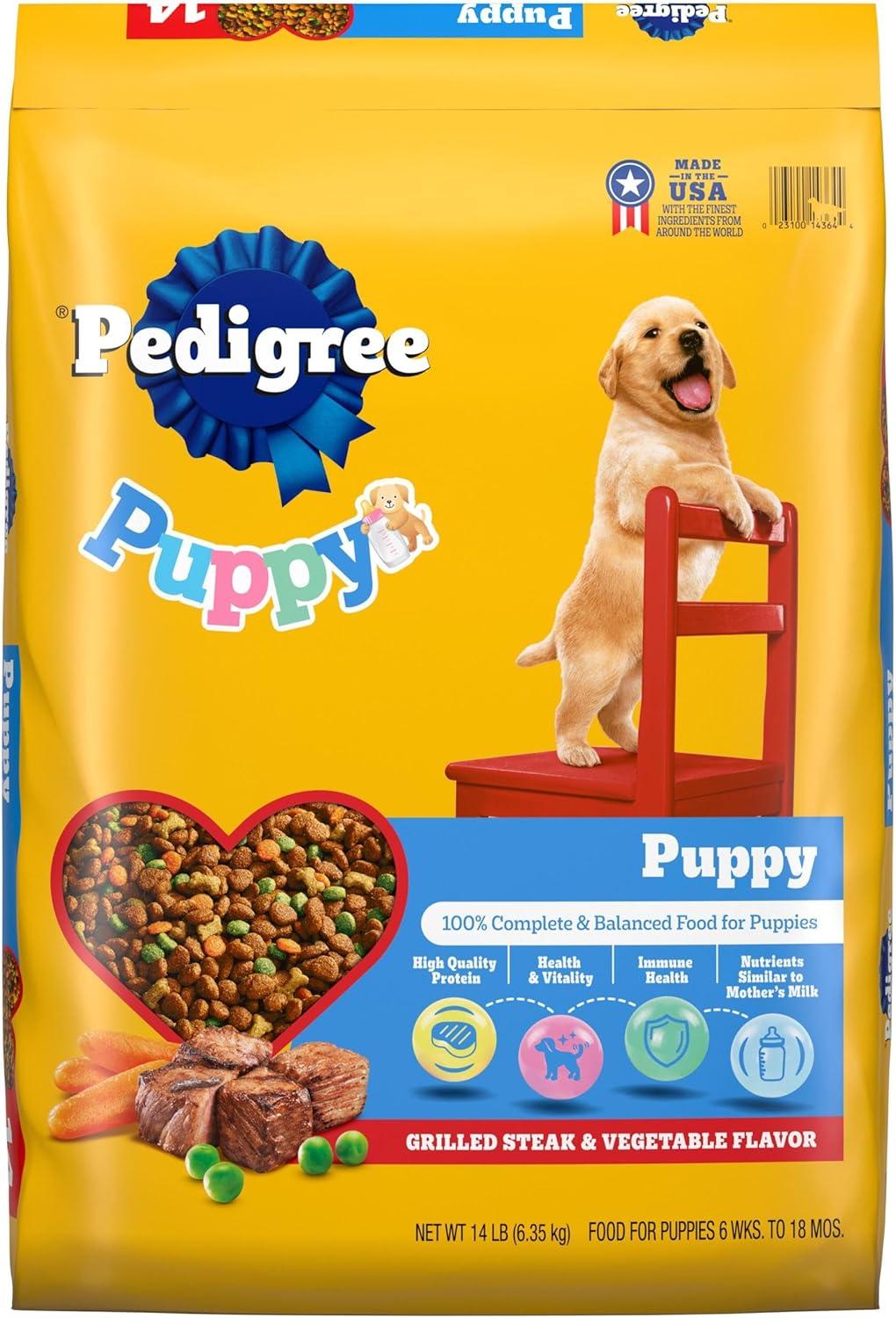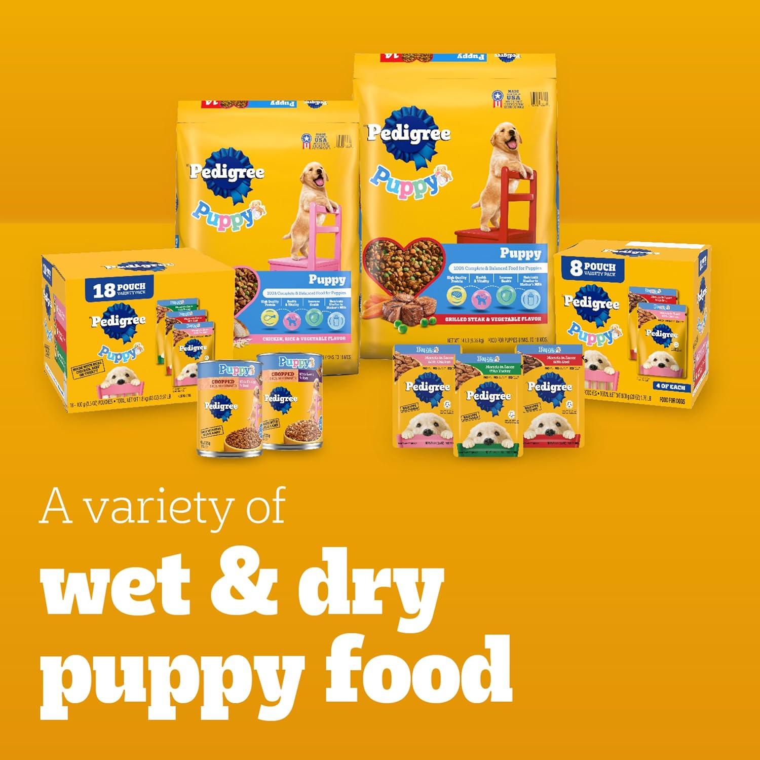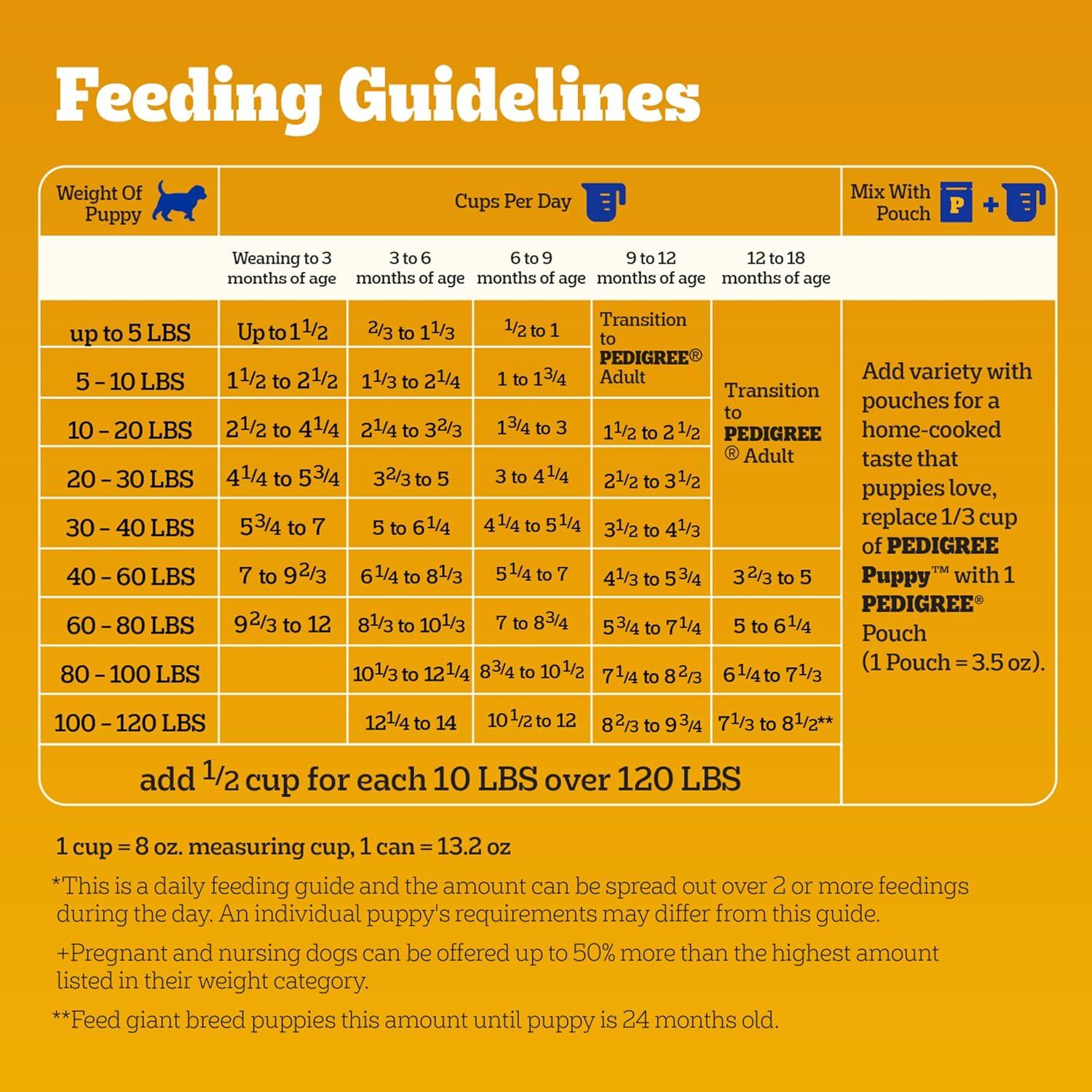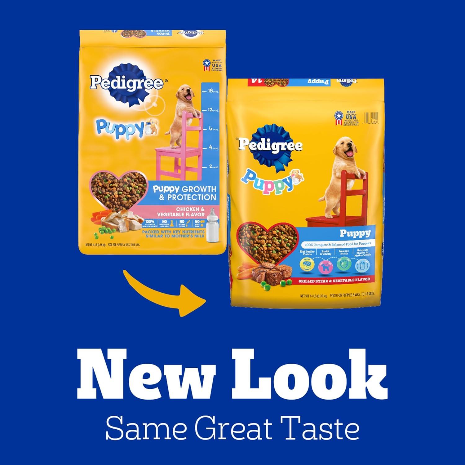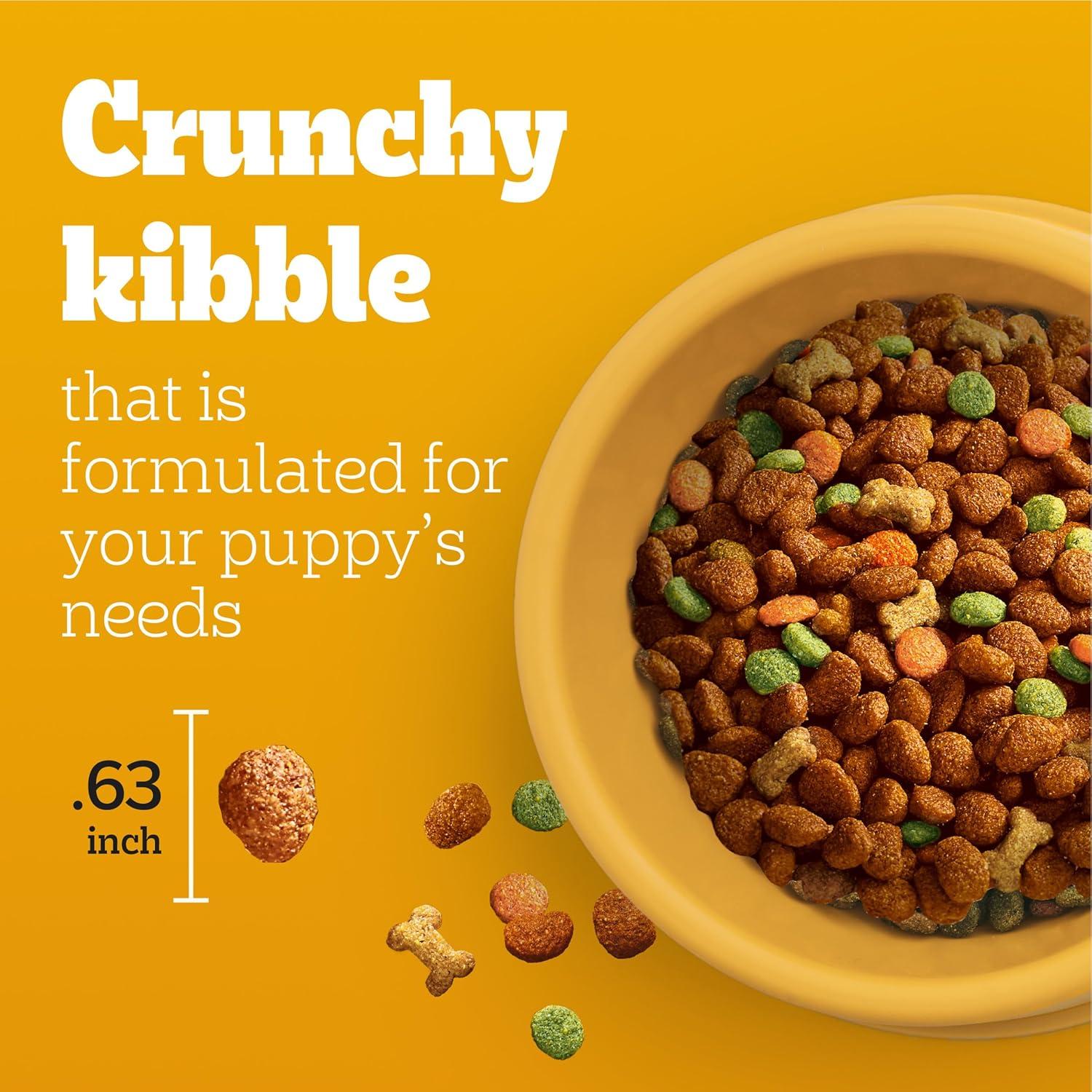 Dogs bring out the good in us. Pedigree brings out the good in them. Express your love for your dog by serving Pedigree Puppy Dry Puppy Food, Chicken, Rice, and Vegetable Flavor recipe. This great-tasting dry puppy food recipe is specifically designed For Puppies, made with high-quality protein sources to support muscle development, and is fortified with vitamins and minerals to support a healthy immune system. Pedigree Puppy Dry Puppy Food, Chicken, Rice, and Vegetable Flavor is also 100% complete and balanced For Puppies and is made with key nutrients similar to mother’s milk, so you can feel confident that your puppy is getting a high-quality meal. To support your puppy’s health and vitality, this dry puppy food recipe is formulated with 36 vitamins, minerals, and amino acids. With no high fructose corn syrup, artificial flavors, or added sugars, Pedigree Puppy Dry Puppy Food, Chicken, Rice and Vegetable Flavor shows your puppy that you care…and have great taste.